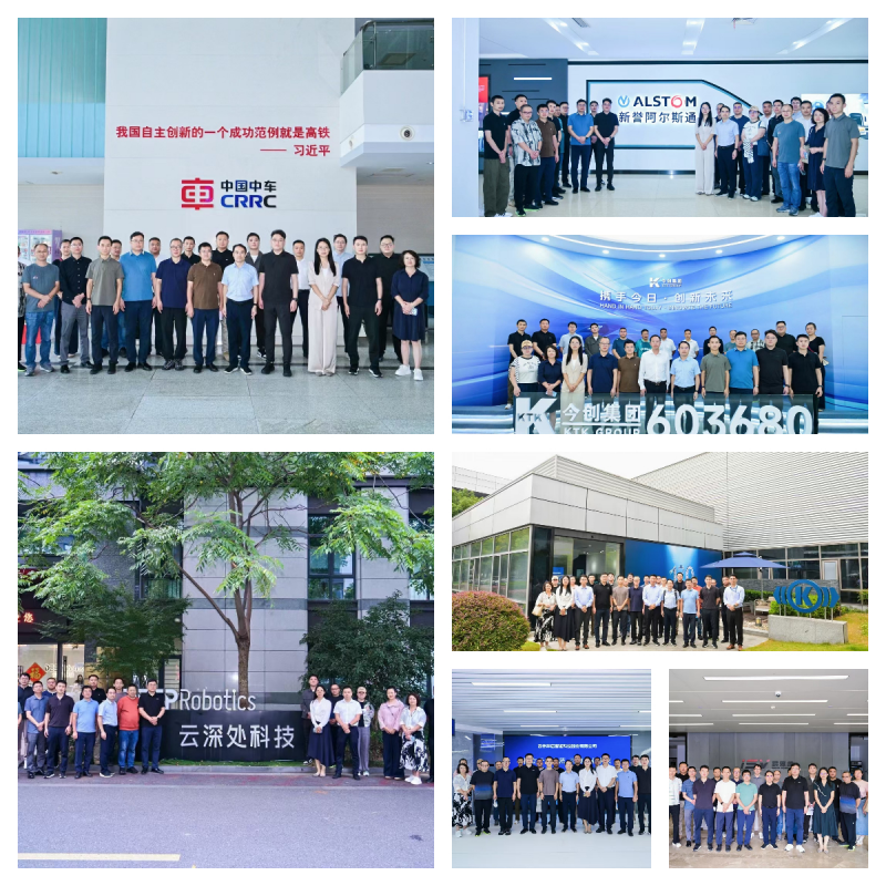 调研团队先后走访江苏新誉阿尔斯通牵引系统有限公司、今创集团股份有限公司、中车戚墅堰机车车辆工艺研究所有限公司、克诺尔车辆设备(苏州)有限公司、苏州华启智能科技股份有限公司、杭州云深处科技有限公司、易思维(杭州)科技有限公司共7家代表企业。通过深入企业生产车间、研发实验室与专业展厅,团队全面了解了长三角地区在轨道交通装备制造、人工智能